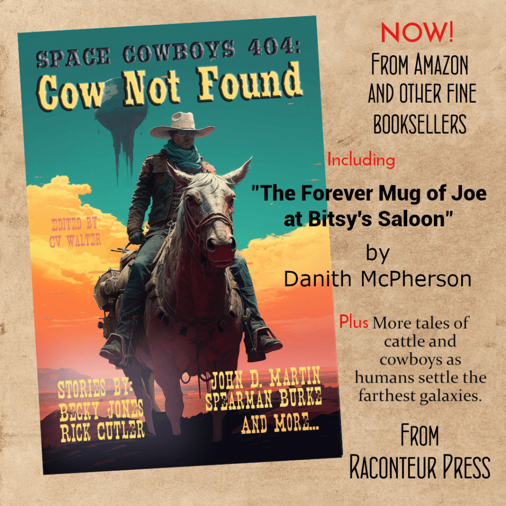 Space Westerns Posted on May 10, 2024 by Danith Yippie-ki-yay! I’m looking forward to being on the Space Westerns panel at MisCon. Nothing like the wide open spaces of, well, space for neo-cowboy and cowgirl yarns. Share this: Click to share on X (Opens in new window) X Click to share on Facebook (Opens in new window) Facebook Click to share on Reddit (Opens in new window) Reddit Click to share on Pinterest (Opens in new window) Pinterest Like Loading...